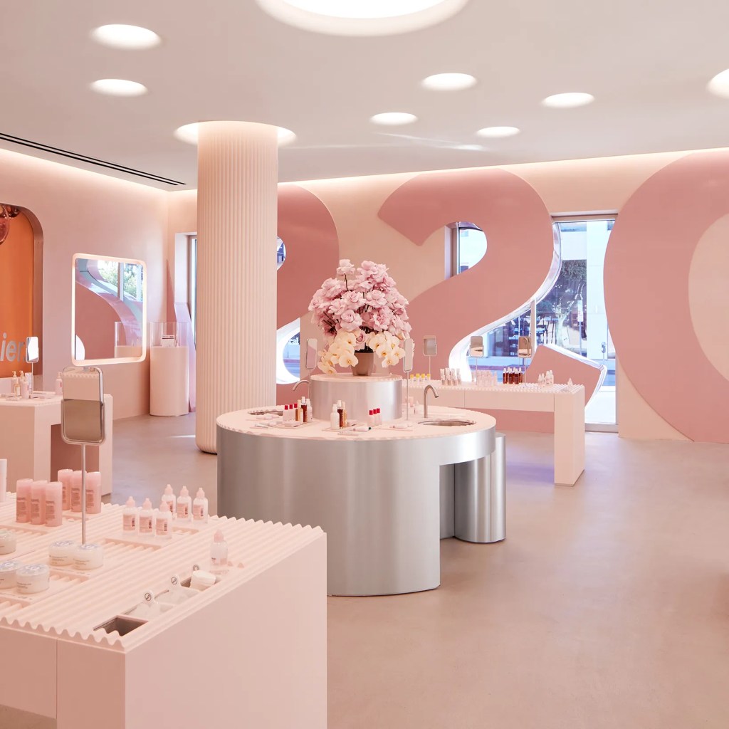 When you walk through the pink sign that says “Glossier” in LA, you’re greeted by a charming pink-themed store filled with cosmetics — a dream come true for many women.
